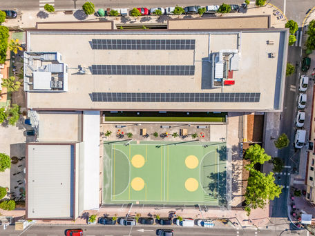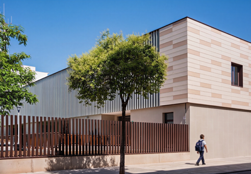 Los espacios docentes de primaria así como la zona de administración se orientan a norte. La zona de infantil se orienta a sur, retranqueándose de la fachada principal para generar un porche que sirva como protección solar. La cocina se orienta al Norte, conectada con el acceso a la calle Tenerías, y comedor se realiza con conexión con la cocina y buscando la ventilación forzada para mejorar la ventilación y eliminar los olores de comida. El comedor tiene fachada por el Norte a la calle Tenerías y por el Sur conecta con el patio, por donde tiene acceso directo desde la zona de porches al polideportivo y los servicios de patio.Se dota a los espacios docentes de lamas para la protección solar y oscurecimiento de las aulas.